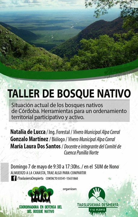 Radio El Grito dialogó con Laura Dos Santos integrante de la Coordinadora en defensa del bosque nativo (CODEBONA) y el Comite Cuenca Punilla Norte sobre la actividad que se realizará en Nono el domingo 7 de Mayo de 9:30 a 17:30. «Situación Actual de los Bosque Nativos de Córdoba. Herramientas para un ordenamiento territorial participativo y activo» Informes: 03541 156 51860